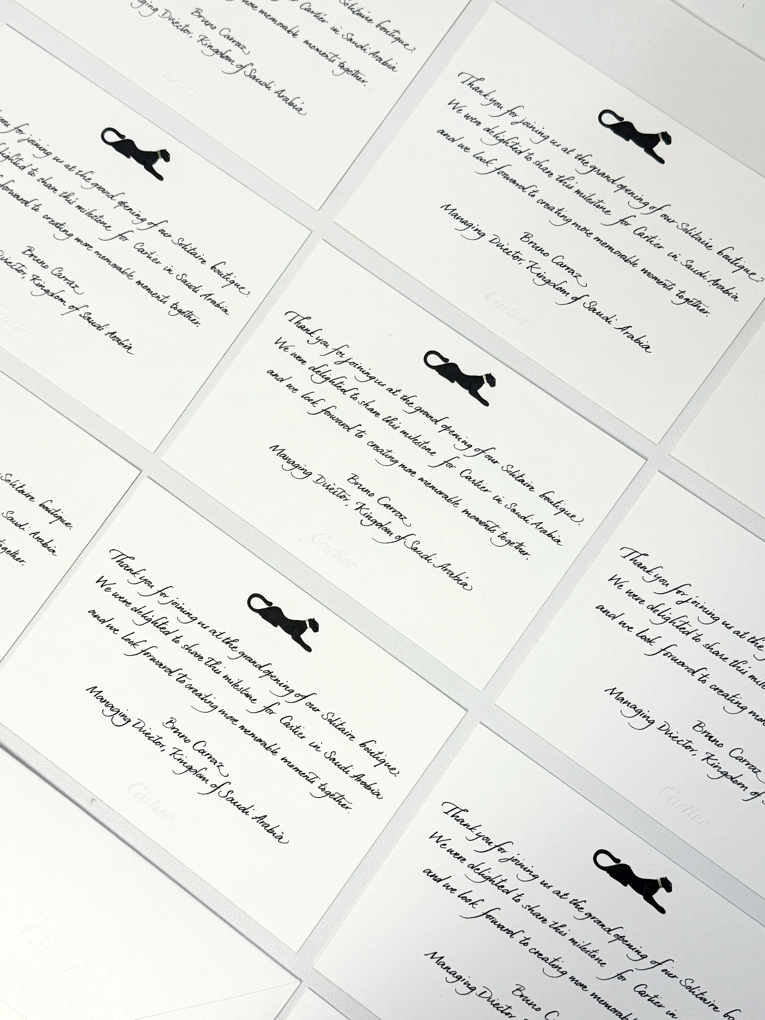 Custom calligraphy for luxury gifting, place cards, and envelopes: elegant touches that elevate every detail.